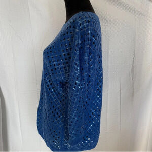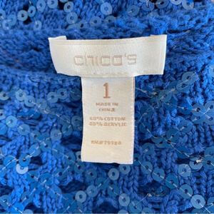 Chico’s blue sequin 3/4 sleeve open weave sweater size 1.
