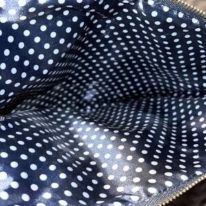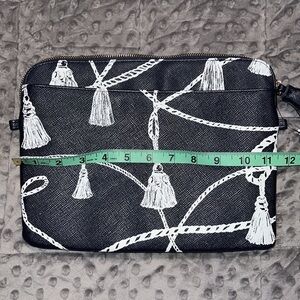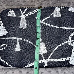 Chico’s blue white tassel print tech bag cosmetic pouch navy blue zip close