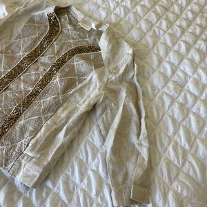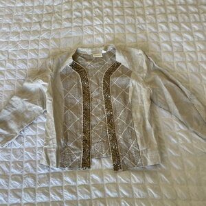 Chicos boho linen Beige and Gold Embellished Jacket
