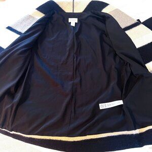 Wool creates cozy texture, while a ribbed knit peeks out from the sleeves for chic contrast.