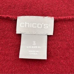 Chicos brick red vneck long tunic length sweater size xlarge (Chicos size 3). Excellent preowned condition see photos for details, measurements and fabric content