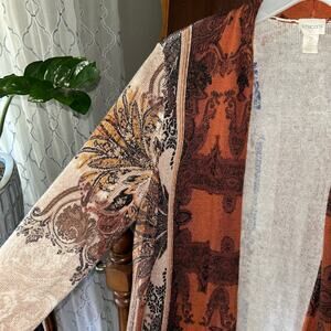Chico’s brown graphic cardigan duster sweater 2 M/L