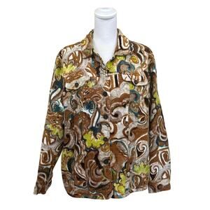 Chico's brown/tan cotton tapestry Jacket, 70s inspired, eclectic, statement