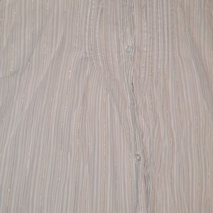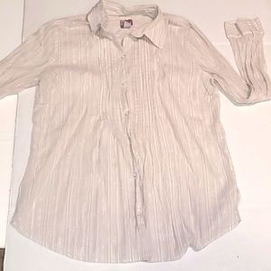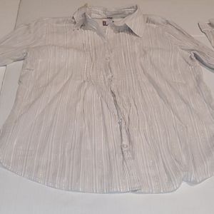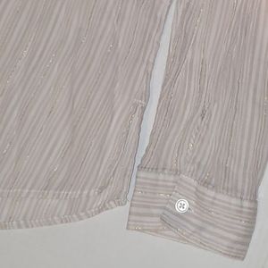 Chico's button down top. White and tan stripes. Gold thread through out. Cotton end. Size 1 vanity size. XL