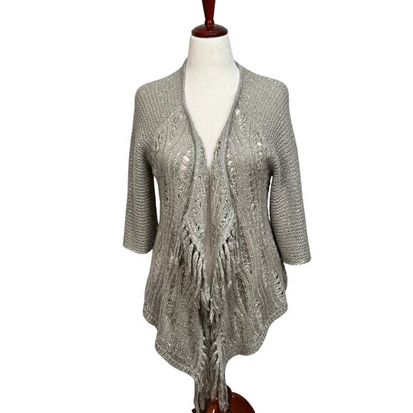 Chico's cardigan sweater metallic tam with sparkle open front fringe Sz 1 US M