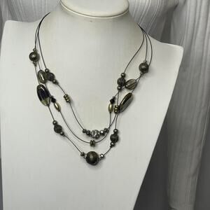 Chico’s Chicos necklace costume signed jewelry burnished silver tone beads on wire vintage or vintage look charm necklace.