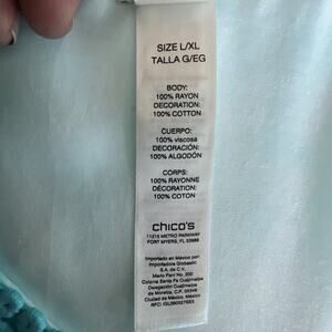 Chico's short sleeve v-neck border eyelet top braid trimmed light green L/XL