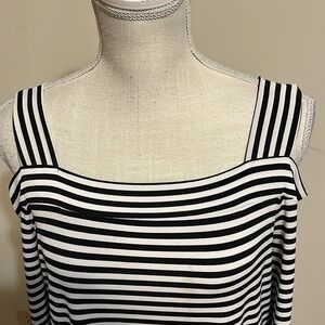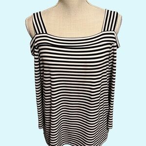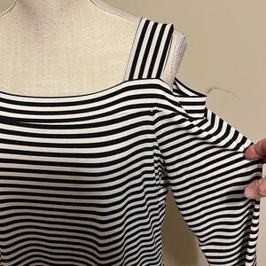 Chicos cold shoulder black/white stripe top. Size 4-6
