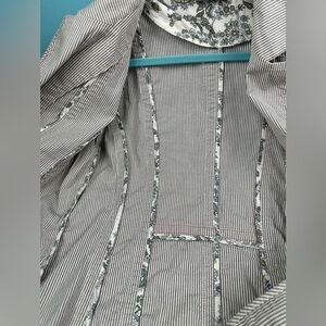 Cute cotton jacket with contrast stiching, pockets. Notice the ribbed textured material. Lots of details. See pictures for details before buying. Chicos cotton jacket, size 2, excellent condition