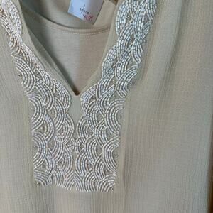 Chico’s cream tunic beaded embroidered collar, sheer with tank liner coastal