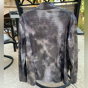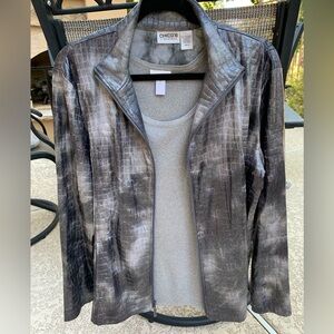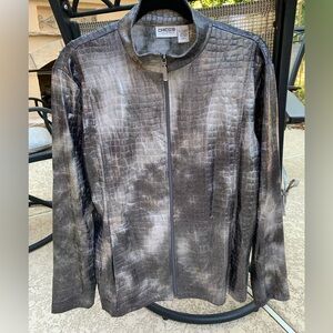 Chicos Silver / Black Crocodile zippered jacket. (Jacket only), Worn once. Stretchy. Metallic accents in fabric. Sleeves can be worn long, pushed up or cuffed-up however you desire.