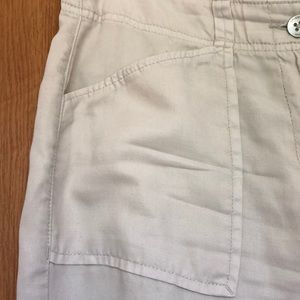 Zippered cropped pants with zipper and button close. Faux pockets in the back, sewn on pockets in the front. Cuffs at the legs. Size is 0.5