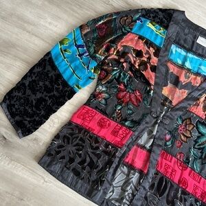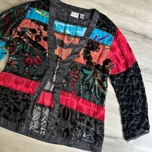 Chicos crushed velvet bohemian burn out patchwork cardigan jacket medium /large