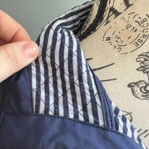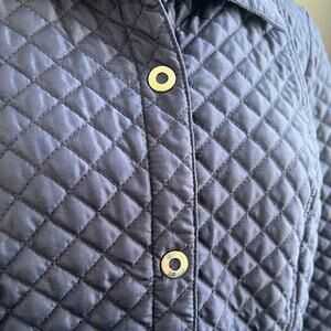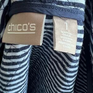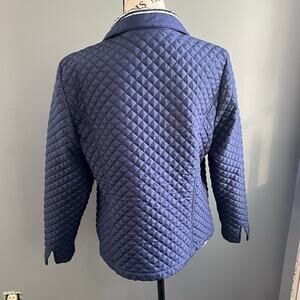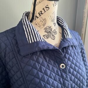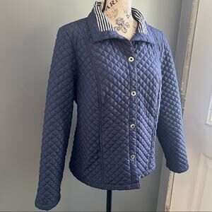 Chico’s dark blue/silver/white quilted snap button collared jacket with pockets