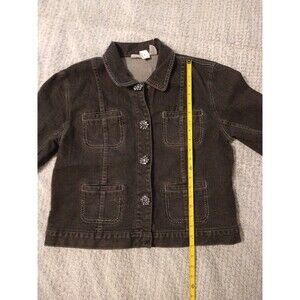 Chico's denim rhinestone flowered Jacket Sz 1 Black classic Boho Feminine