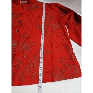 Chicos design floral button front top red long sleeve embroidery Sz 3 - XL/16