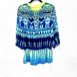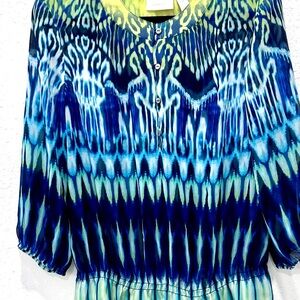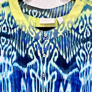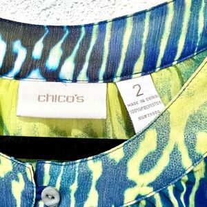 Chico's elastic on the waistline 3/4 sleeves Blue and Green Graphic Tunic 2