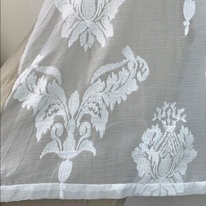 There’s 2 tiny holes behind neck and 2 marks in the lower front panel that gets hidden in the folds, see photo. Priced according!