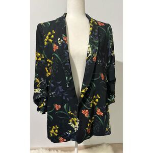 Chico’s floral black blazer ruched sleeve open front (1) U.S 8