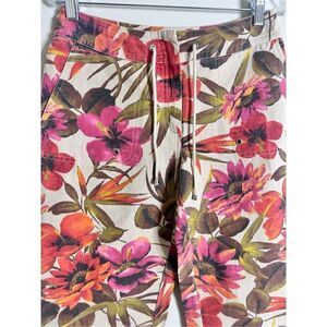Chicos floral blend tropical cropped linen blend capris sz 6