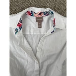 Chico’s floral Trimmed 3/4 sleeve blouse Womens 2 (12-14)