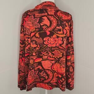 Chico's full zip Cotton sweatshirt beaded floral stretchy jacket XL 16 red brown