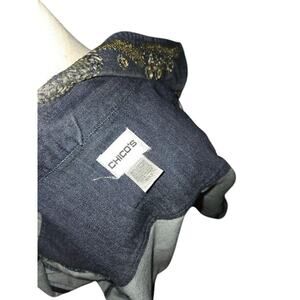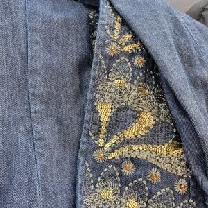 Chico’s gold embellished sequin design Jean jacket size large or Chico's size 2