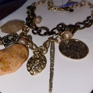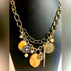 Chico's gold tone Agate CZ drop link necklace 18-21"