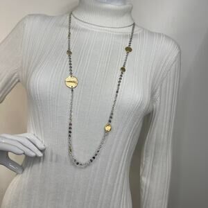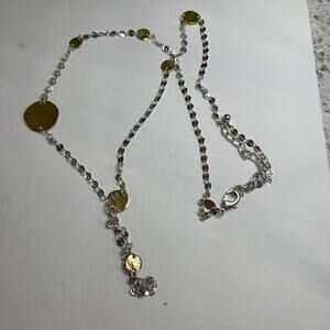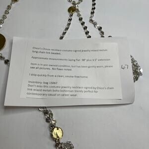 Chico’s Chicos necklace costume signed jewelry mixed metals long chain link beaded.