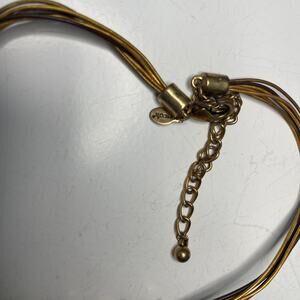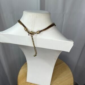 Chico's gold tone necklace beaded signed costume jewelry disks black cord