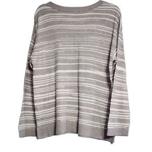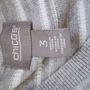 Chicos gray & white striped v-neck lightweight long sleeve sweater excellent condition 48" bust 26" long