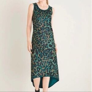 Chico’s | green animal print sleeveless hi-low MIDI dress. Size 1 reg 8/10.