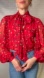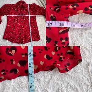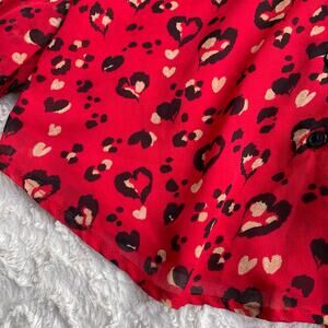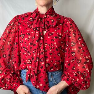 Chico’s heart animal leopard print blouse tie neck bow balloon sleeve red black