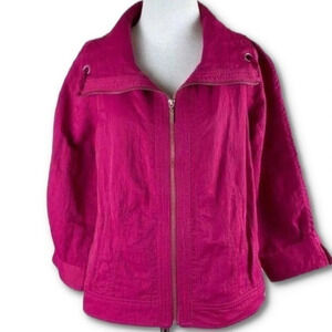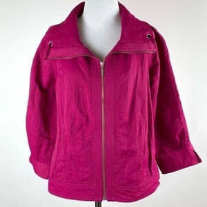 Chico’s womens jacket size 0/4 pink 3/4 sleeve zip with pockets blazer