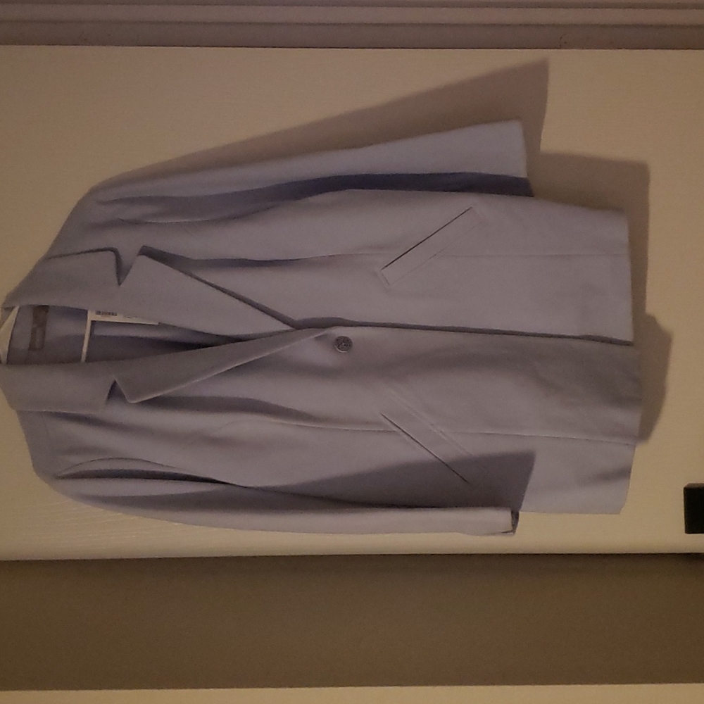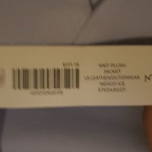 knit plush jacket. chicos size 3. color is listed as indigo rice. light periwinkle color.