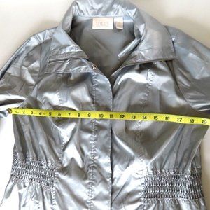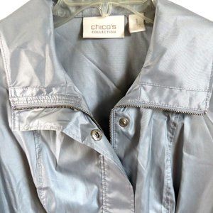 Chico's jacket spring silver shimmer size S/1 front zipper snaps light weight