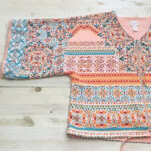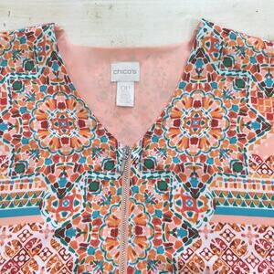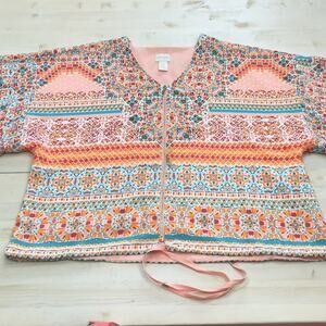 Chico’s kimono sleeve Mexican geometric print full zip lightweight jacket sz 0P