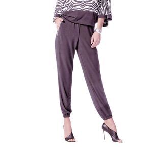 Chico’s size 3(XL) joggers cropped ankle. Brown wide waist band and elastic at ankles. Big zippered pockets. Great travel pants. Top of pants side to side 18” , rise 12” and inseam 27.5”. Travel, casual
