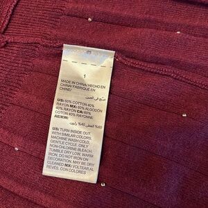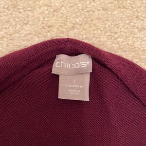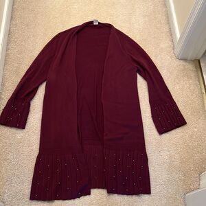 Chico’s ladies pleated burgundy faux pearl cardigan size medium.