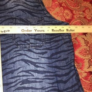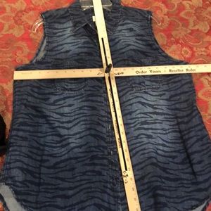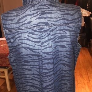 Chico’s large blue denim sleeveless animal print denim button down shirt