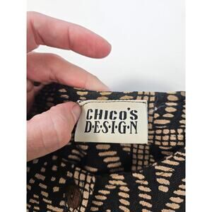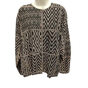 Chicos large coatigan heavy twill cotton button front brown black Aztec EUC L