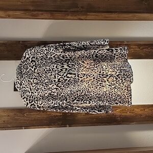 excellent condition- Chico's No iron, button up long sleeve top. beautiful leopard print- classic chicos. 3 button placket front , hidden buttons below.