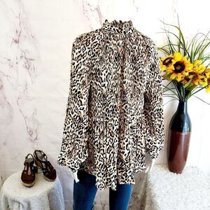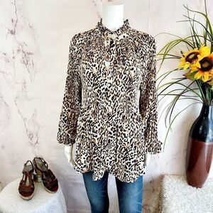 Excellent condition no flaws Chico's v neck leopard print top with keyhole neckline detail. Pleated front with fluted sleeves flattering peplum shaping size 2 or medium