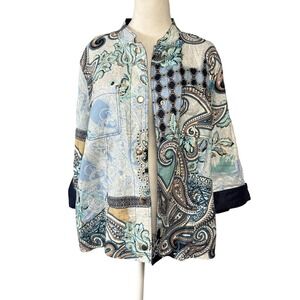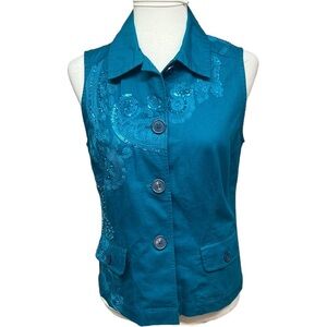 Chico’s Weekends presents this fun, stylish, lightweight vest. This can accompany any outfit and add some extra style. Chico’s size 2 is equivalent to a Large. Gently used in great condition.