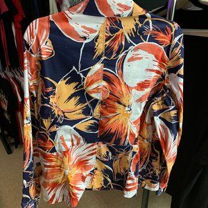 Floral lightweight Spring/Summer jacket. 98%cotton, 2%spandex with four silver tone buttons