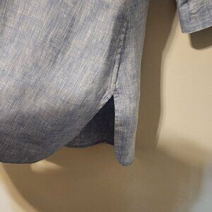 Chico's linen shirt sz 2 / 12-14 blue button down 3/4 sleeve business casual