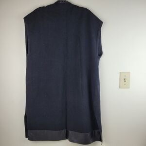 Chico's long black sleeveless sweater vest side slits faux leather trim office M