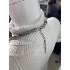 Chico's long gray silver tone signed costume jewelry beaded beads rhineston