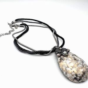 Chico’s marbled rhinestone beaded corded layered silvertone necklace pendant
