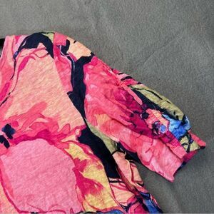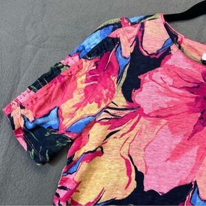 Chicos medium Linen Floral Ruched Sleeve Tee